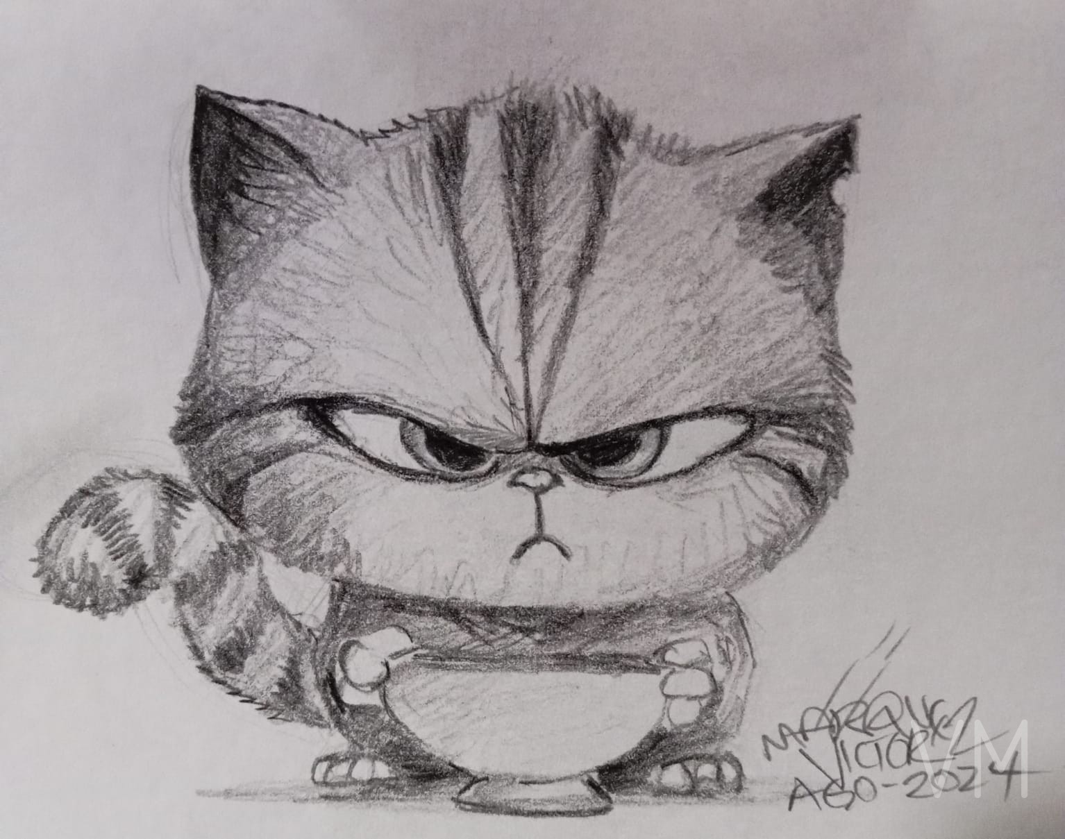 Gatito chibi con expresión de enojo puro, con las patas apretadas.