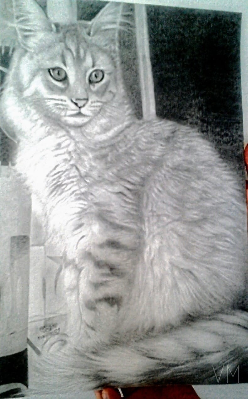Retrato hiperrealista de un gato de pelaje largo con mirada penetrante.